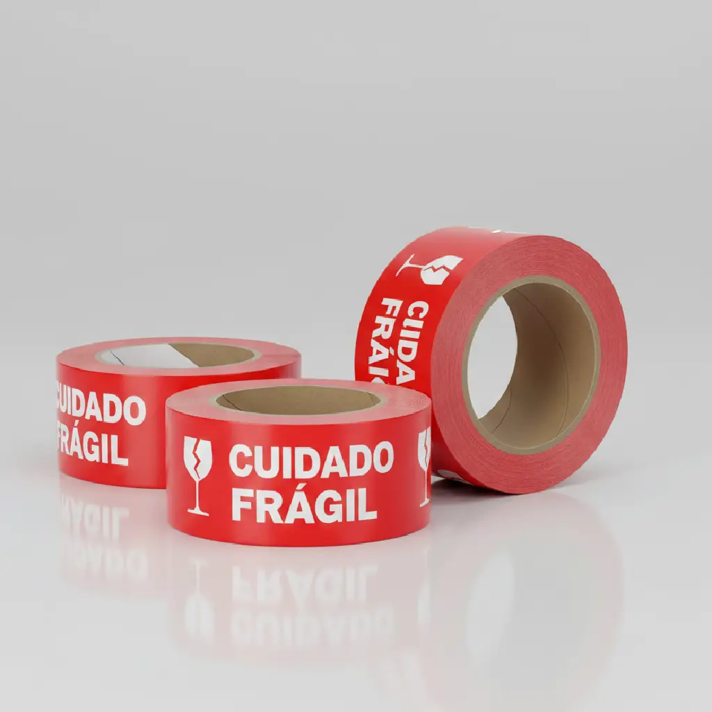 Fita impressa ‘Cuidado Frágil’ para embalagens delicadas.